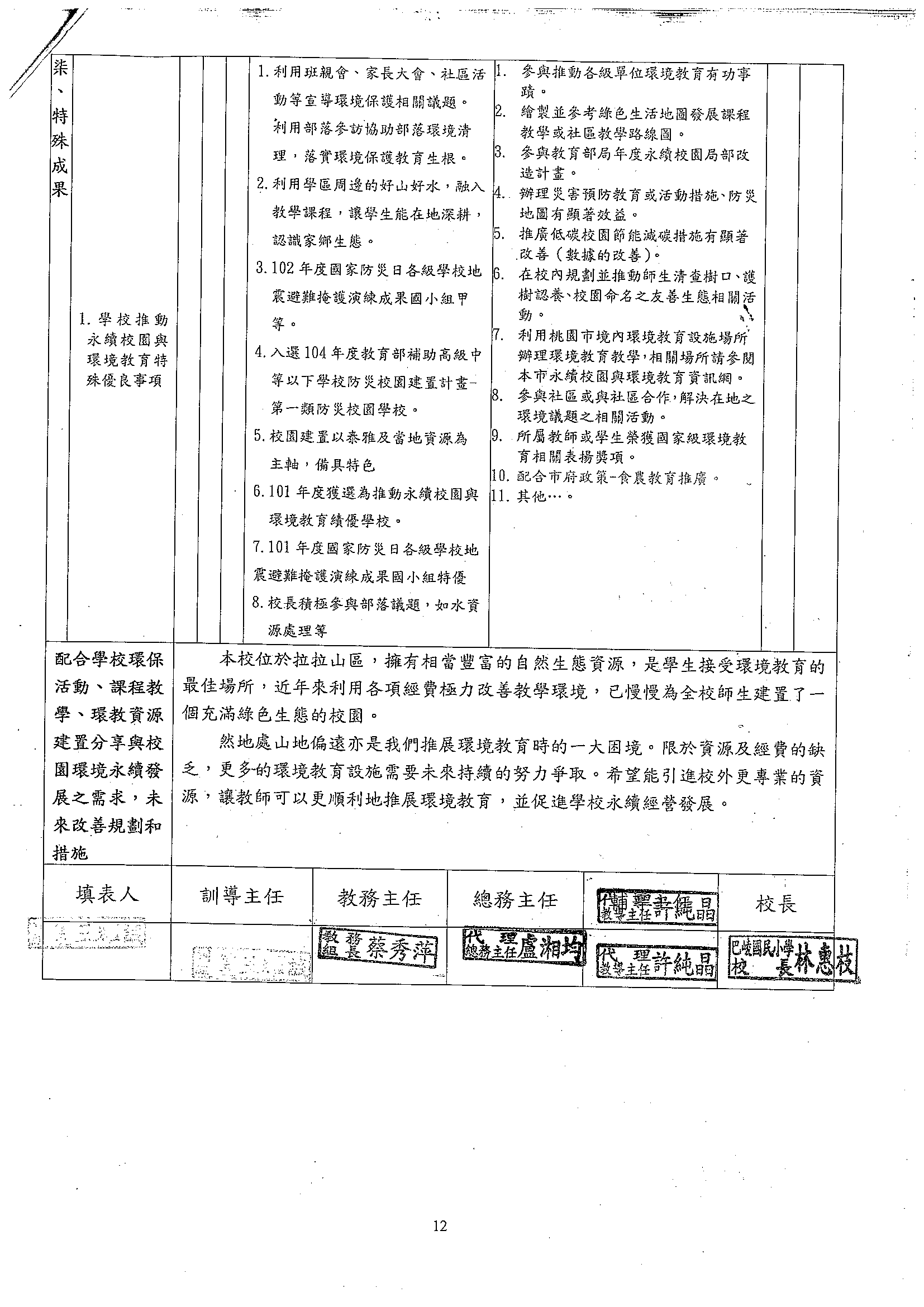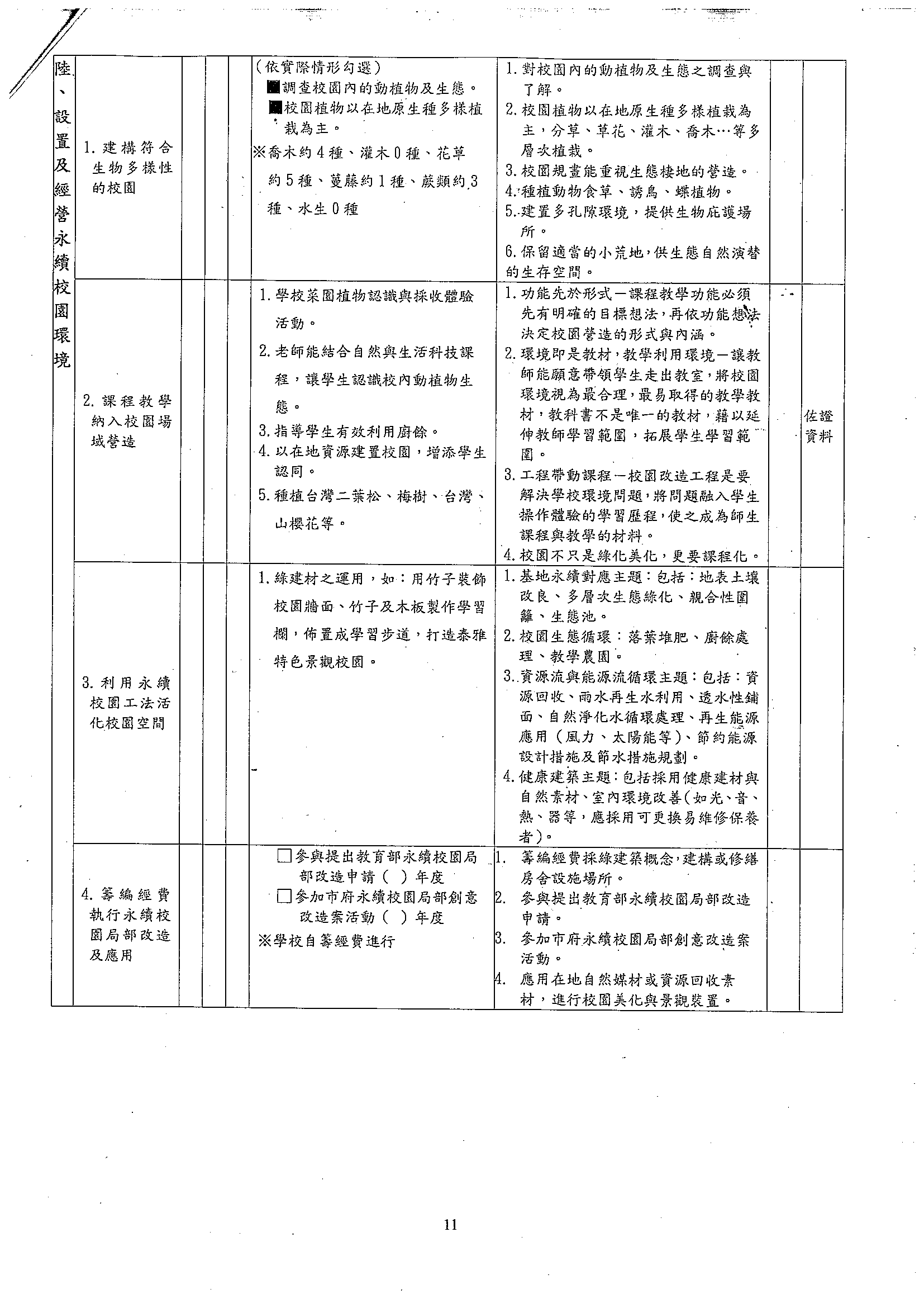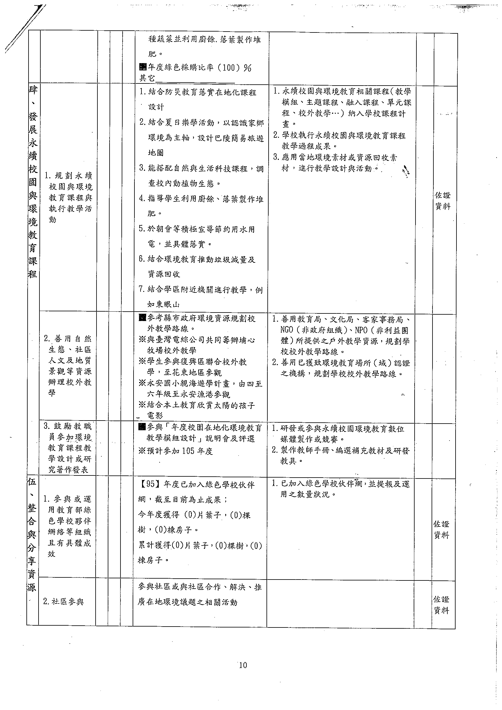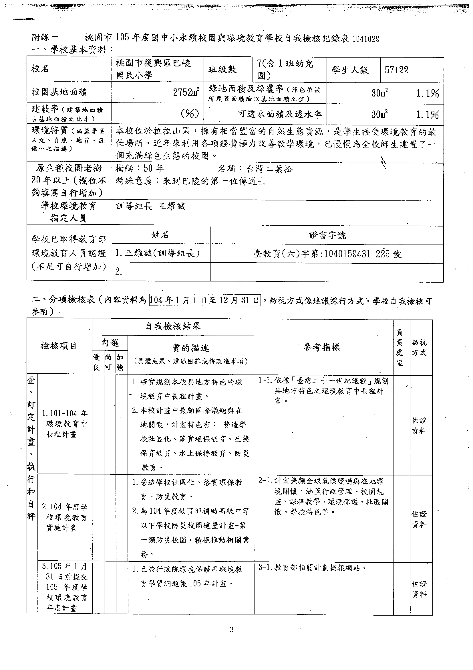105年度永續校園與環境教育學校自我檢核表