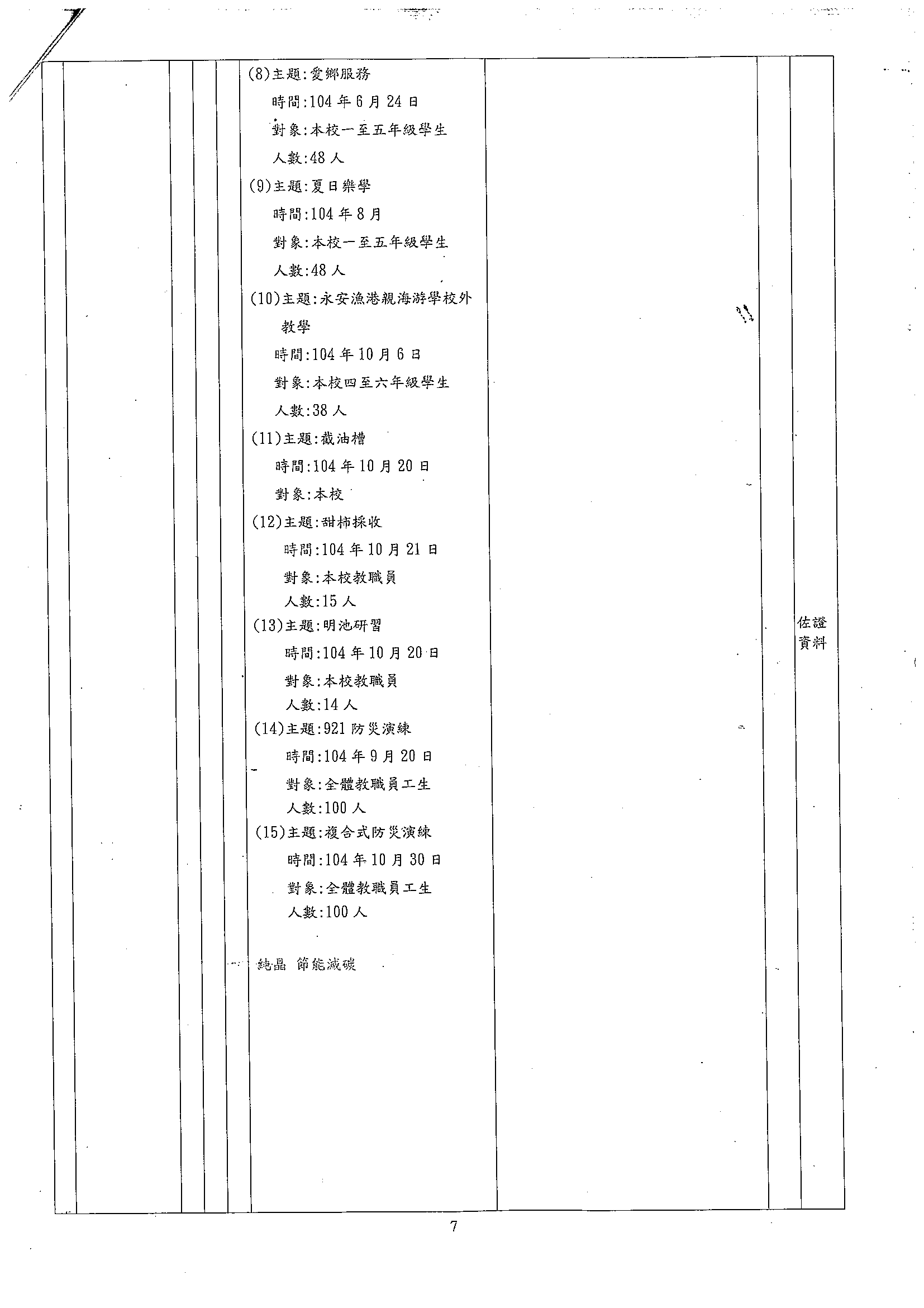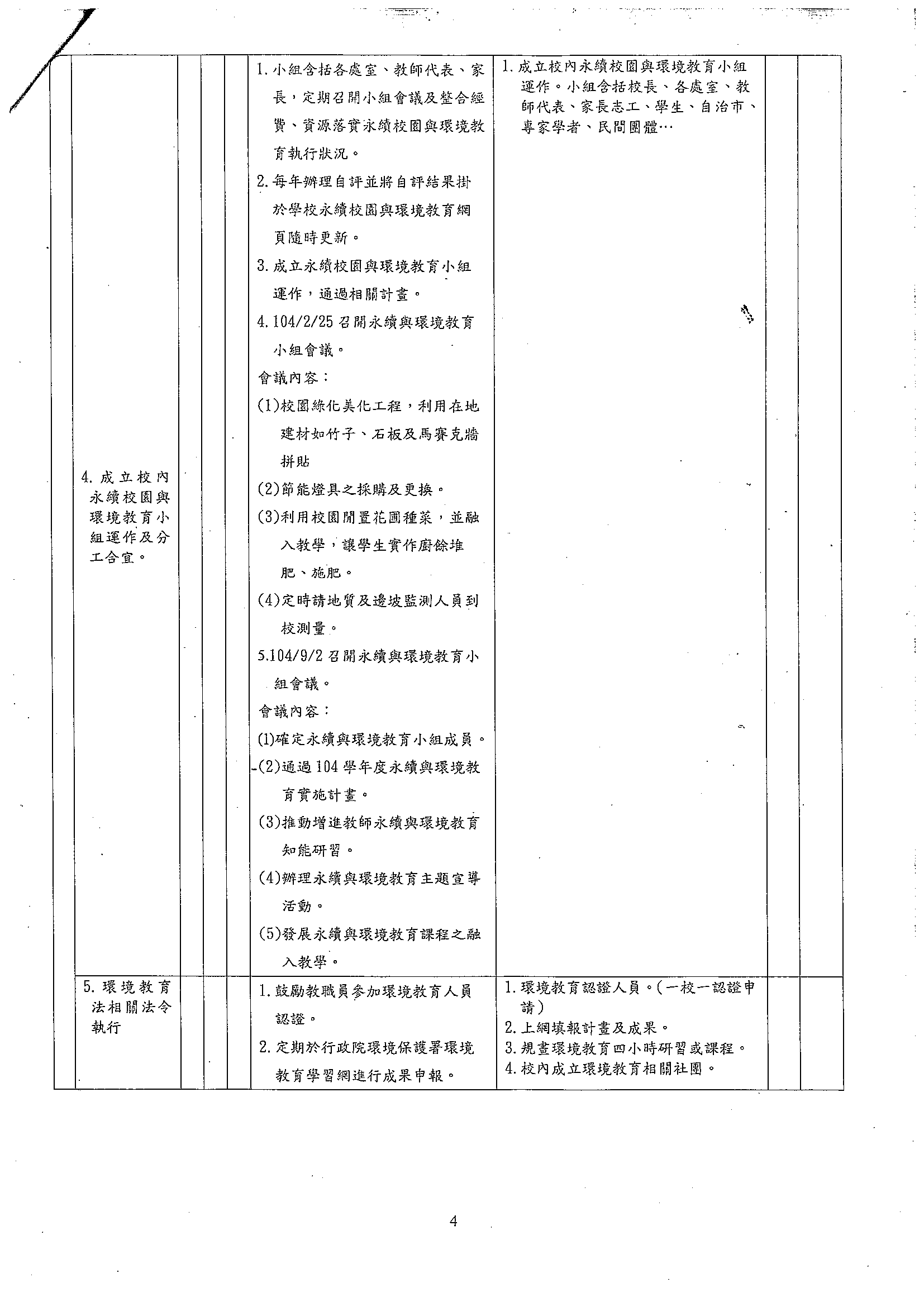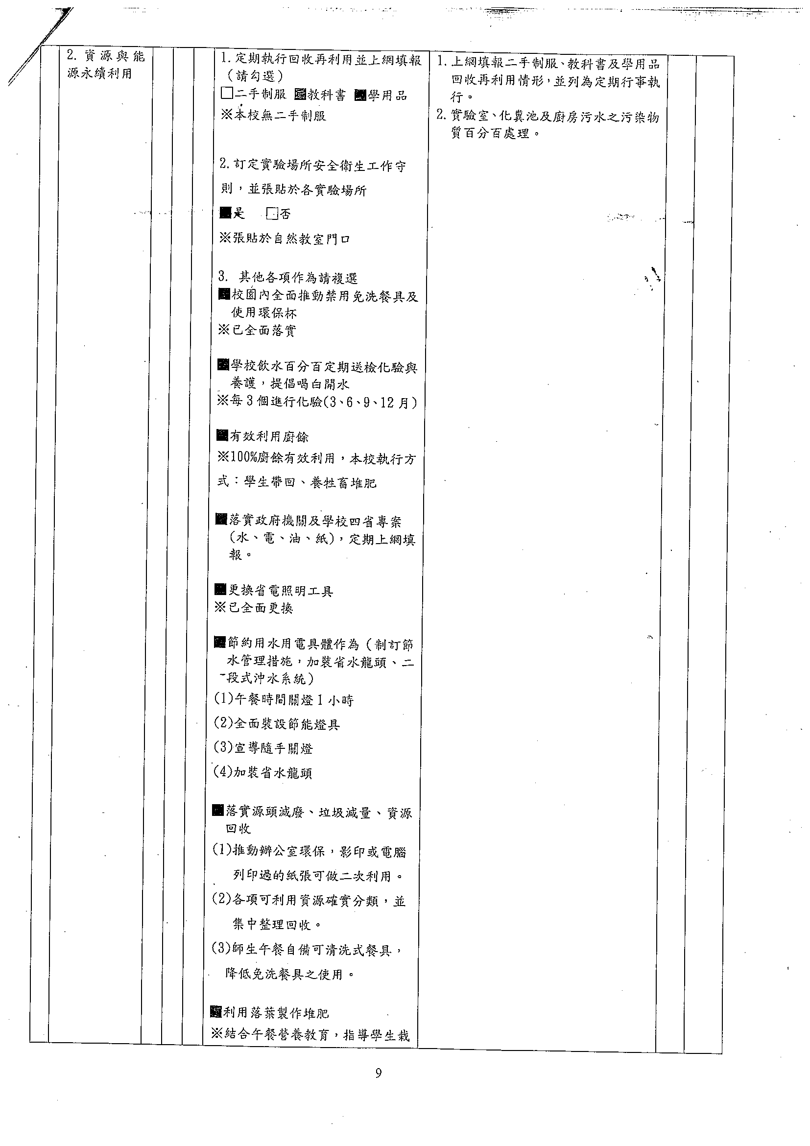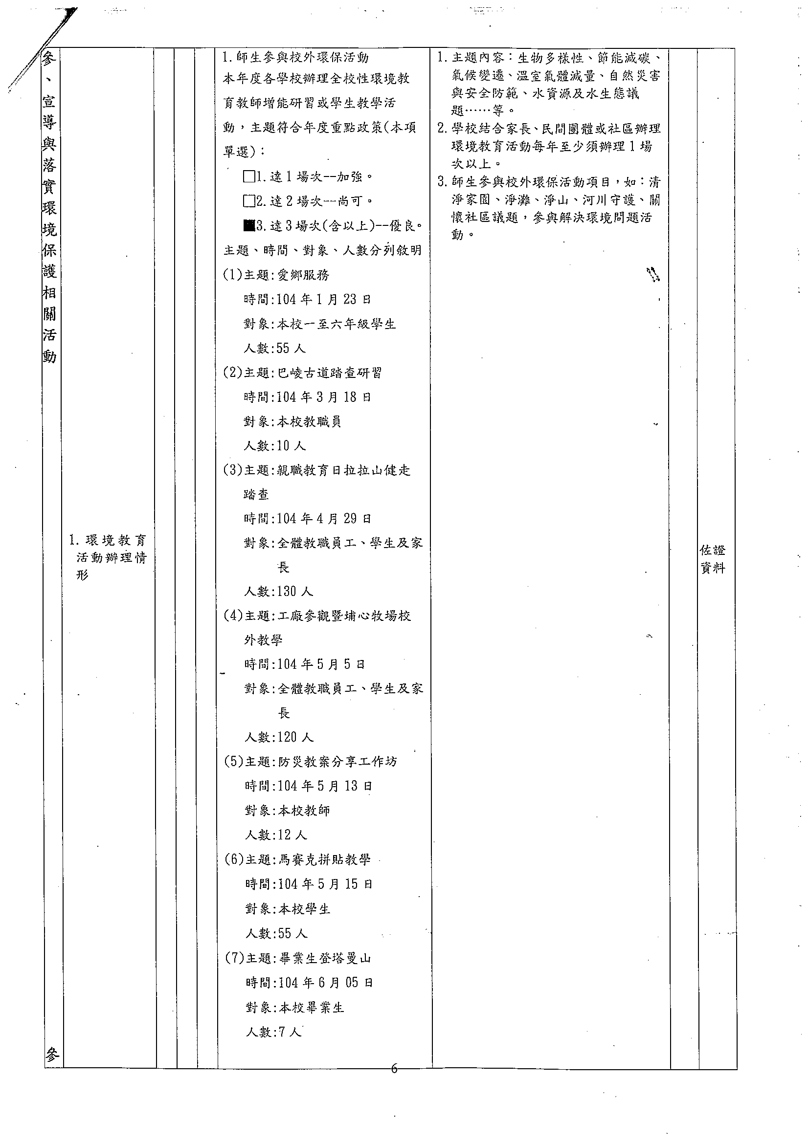 105年度永續校園與環境教育學校自我檢核表