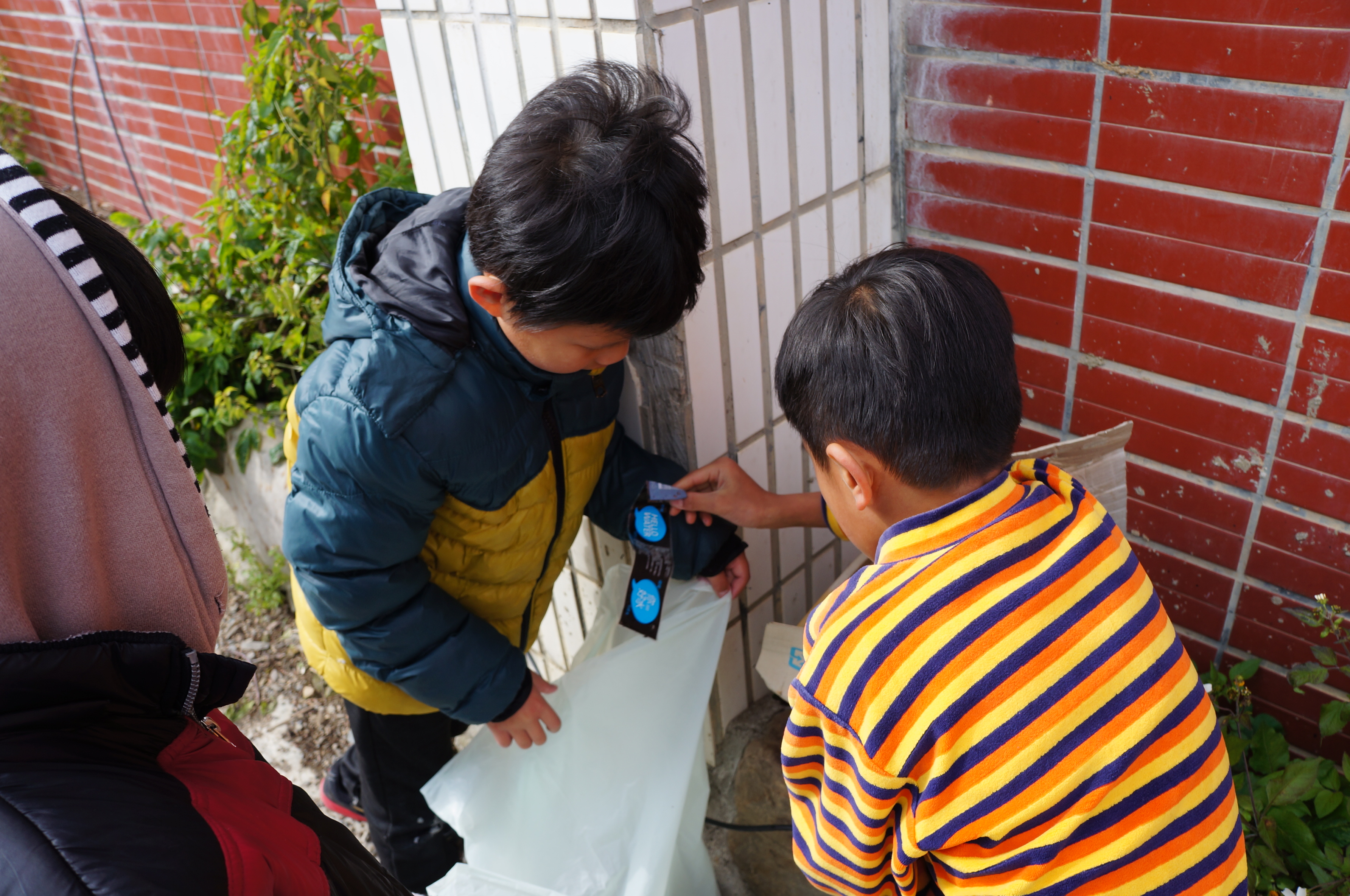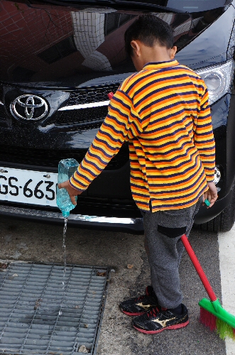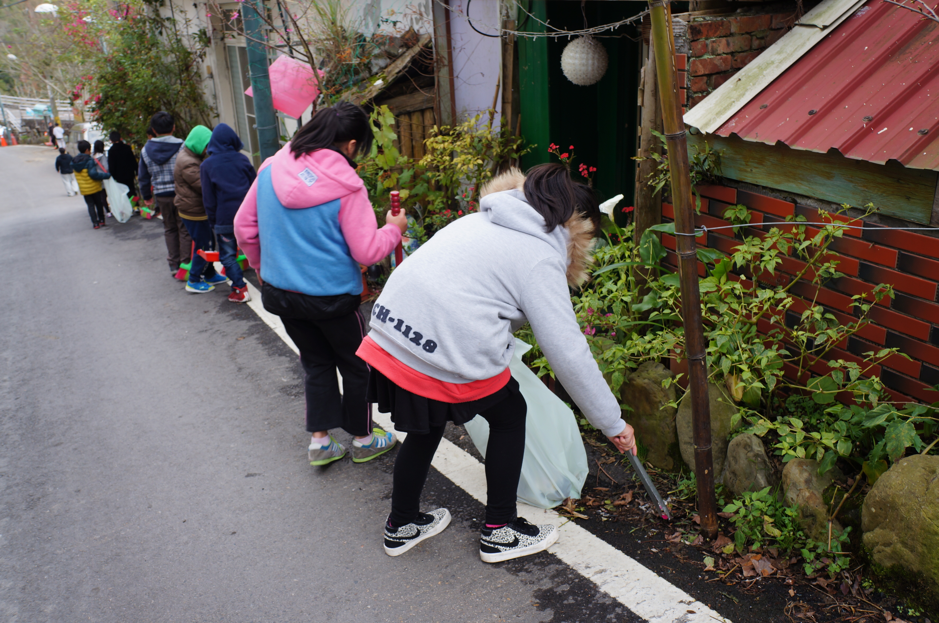 學生沿著平時上學所經的道路做清掃