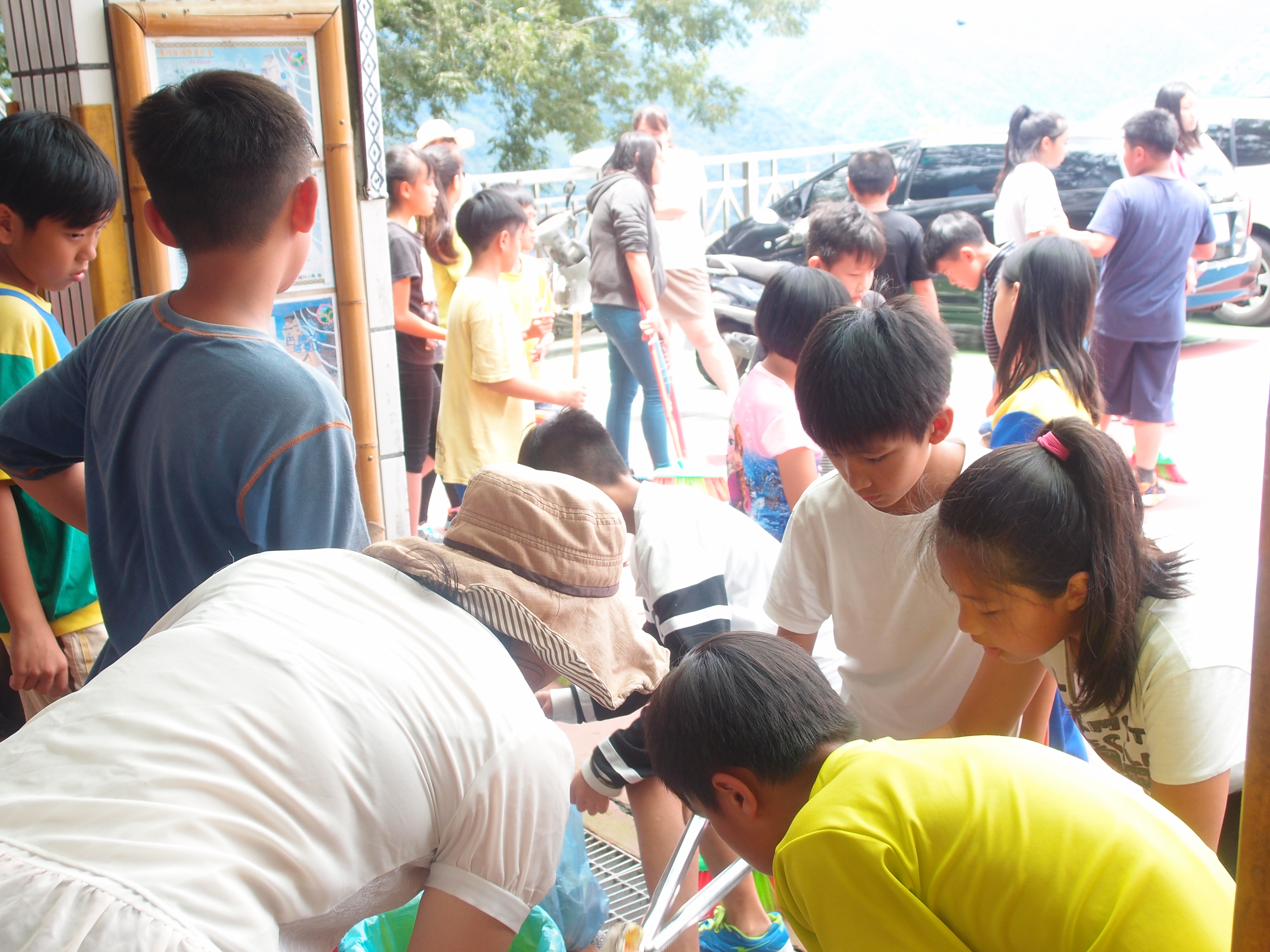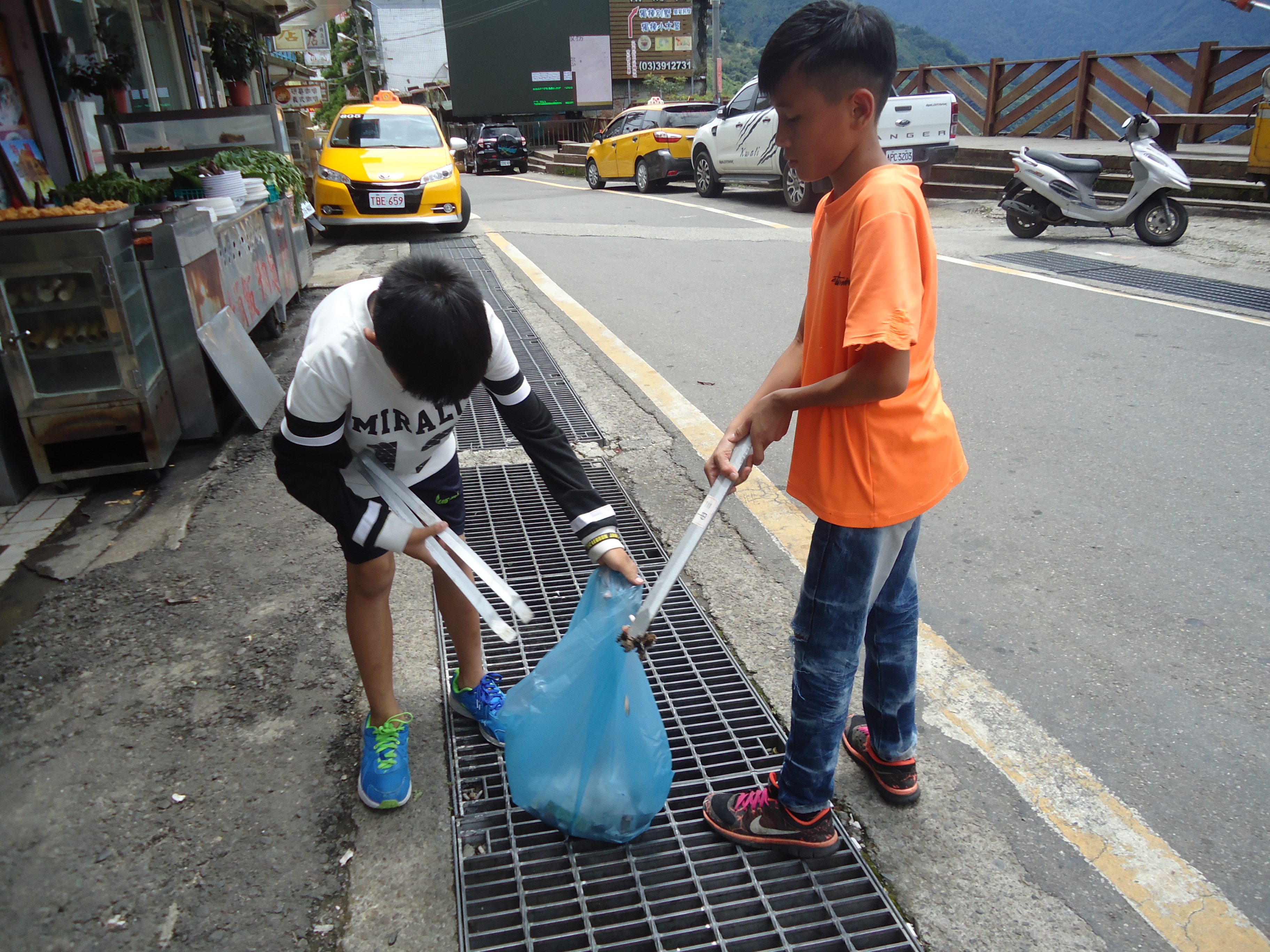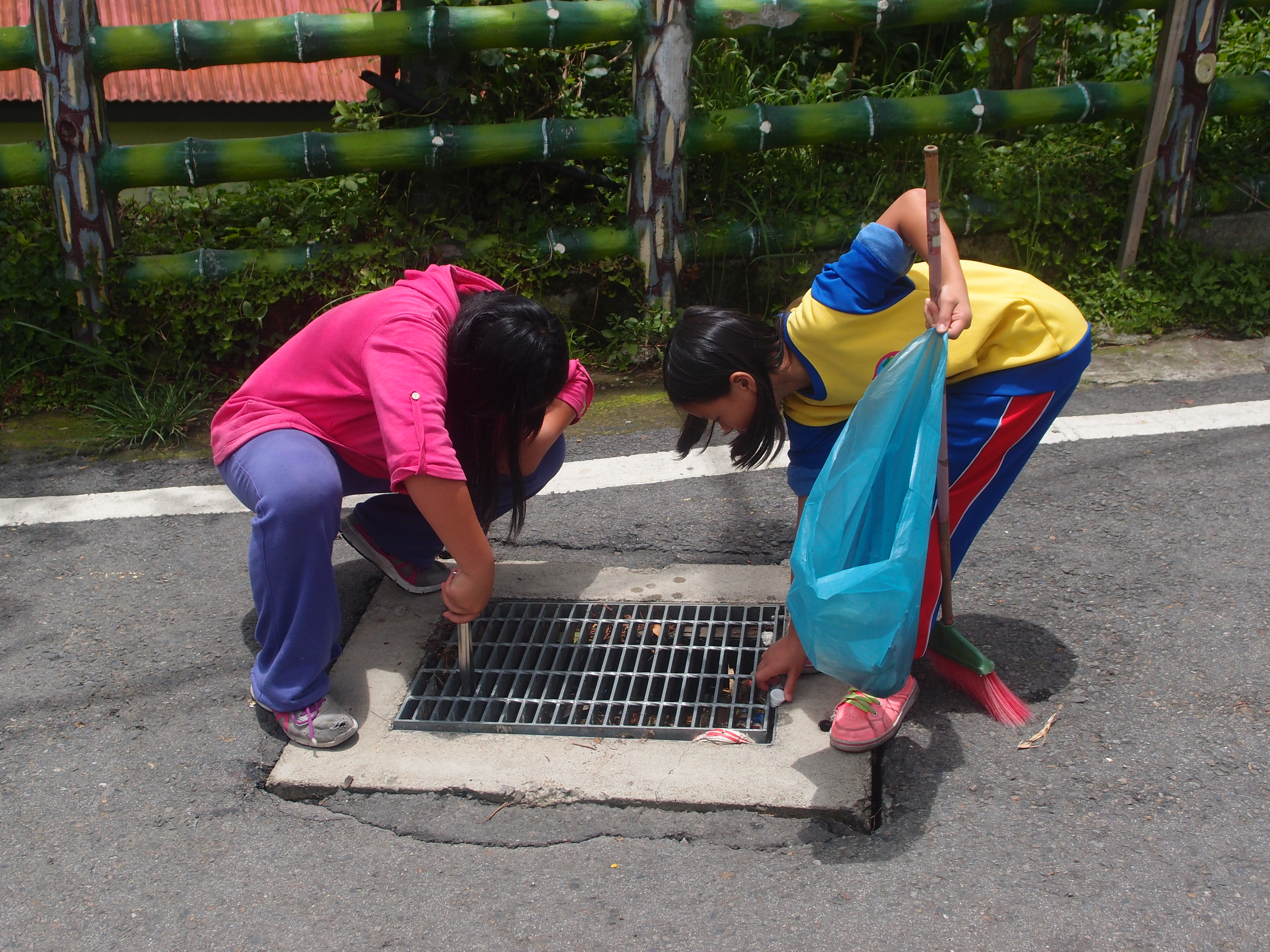 分工合作將卡在水溝蓋上不易清理的垃圾撿拾乾淨