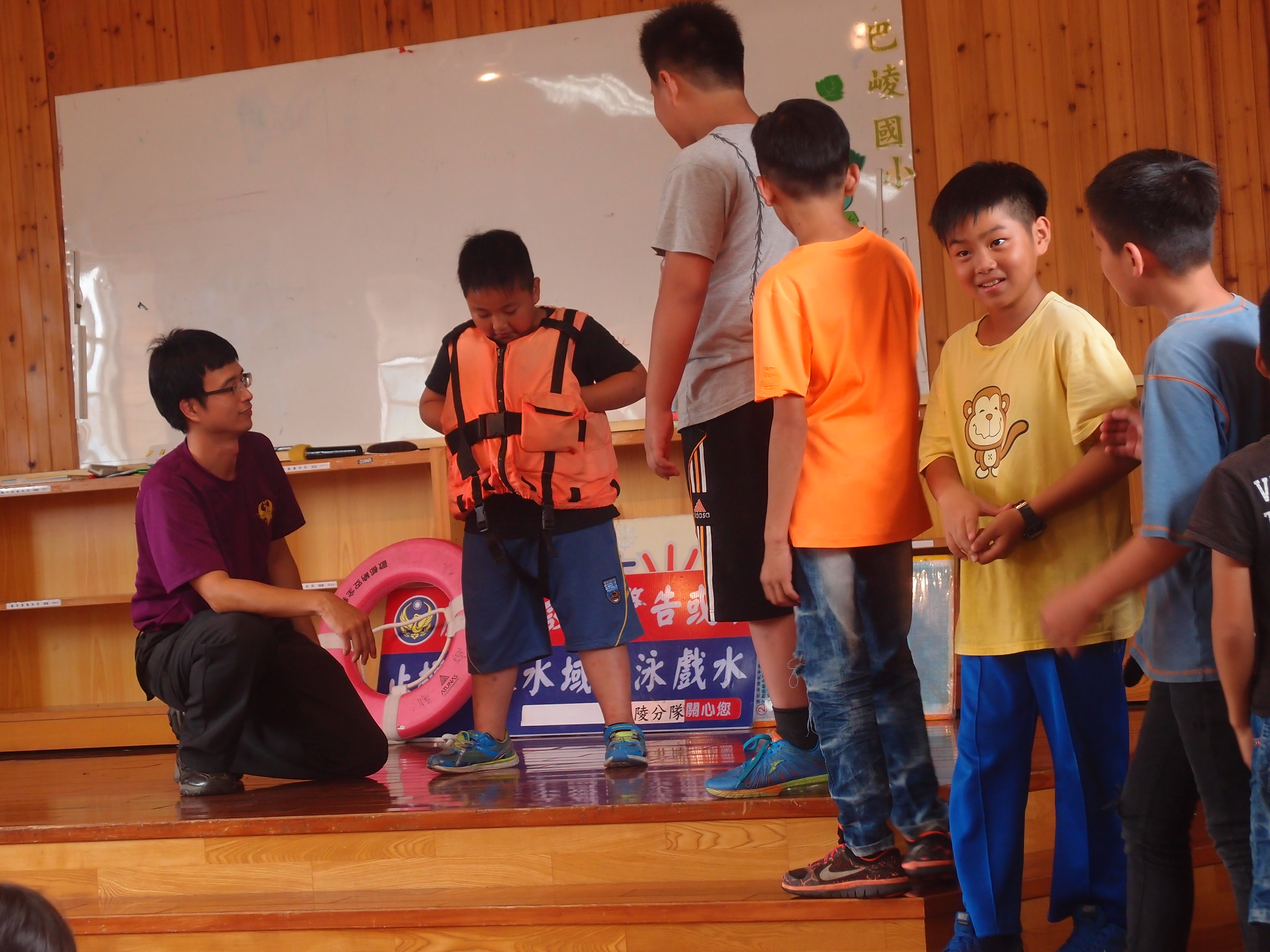 學生輪替體驗救生衣穿法