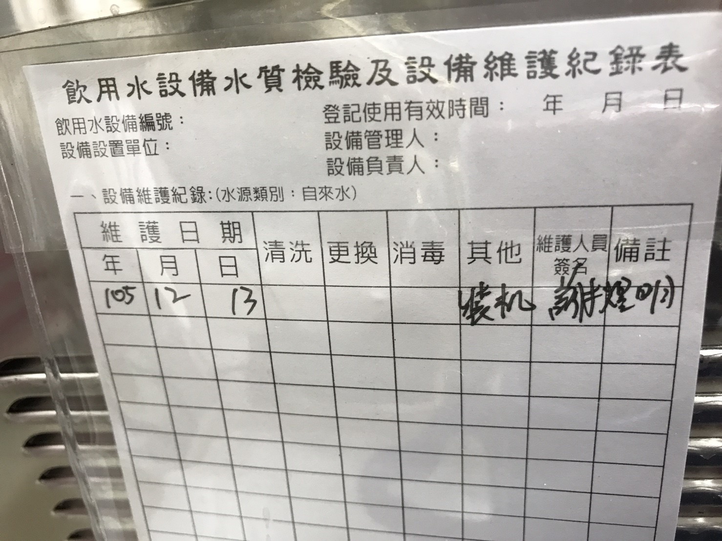 飲用水設備維護紀錄表
