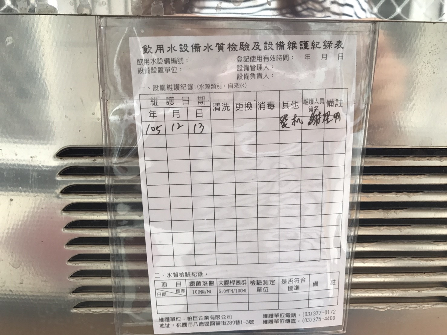 每台飲用水設備皆有紀錄