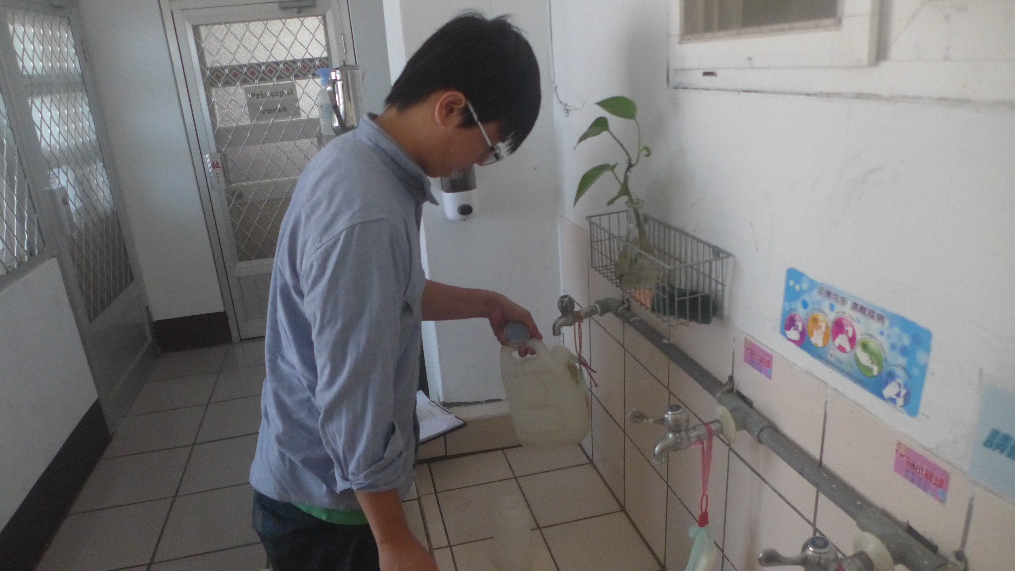學生利用下課時間盛水