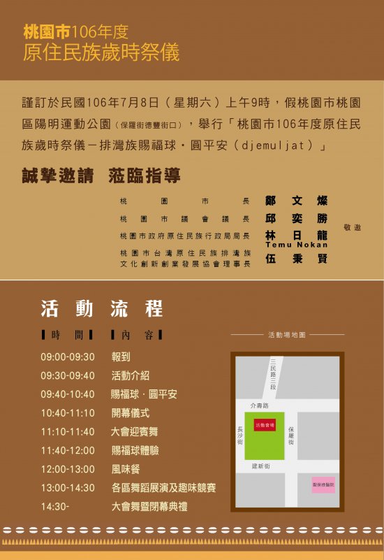 桃園市政府教育局舉辦「桃園市106年度原住民族歲時祭儀-排灣族賜福球‧圓平安(djemuljat)」活動