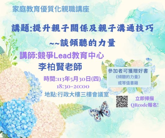 1.時間:113年5月30日(四)晚上18:30-20:00。 |